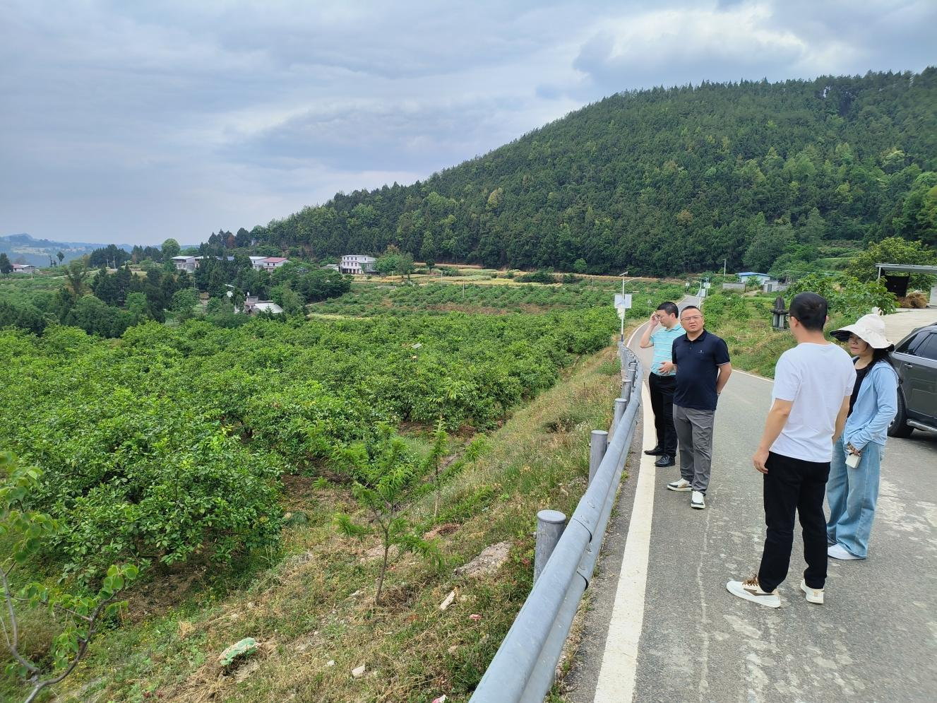 分管农业副镇长同阆中市和美公司到岳林垭村调研柠檬产业发展情况