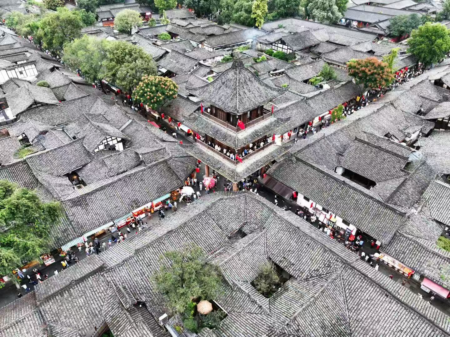 10月2日,国庆中秋双节假期第二天,阆中古城景区游客接待量迎来高峰,预估单日游客量或将突破10万人次,中天楼、张飞庙、贡院等核心景点游人如织,古城街巷处处洋溢着节庆氛围。