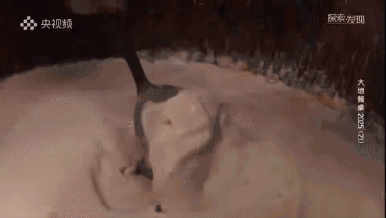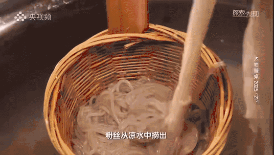 罗文根要用红薯做一道著名的四川风味小吃——酸辣粉。酸辣粉的原料是红薯淀粉,从一颗红薯到一碗热气腾腾的酸辣粉,其中的工序相当复杂,将收获的红薯洗净、切块,再放入木桶中用切刀捣碎。夫妻两人密切配合,切碎的红薯倒入石磨打磨成浆。100千克红薯一般可以出20千克淀粉,用纱布过滤,这样得到的红薯淀粉非常细腻,无论是黏度还是口感都比较好。将粉浆静置沉淀。期间多次换水,等水从浑浊到清澈,就得到了水淀粉,将水淀粉放于太阳下暴晒,然后再细细的碾压成干粉,红薯淀粉就做好了。