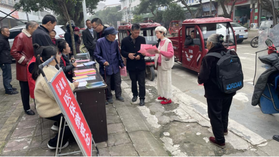 一是抓实业务培训。详解缴费标准、资助政策及线上线下操作流程,确保60余名经办人员“懂政策、会解答、能操作”,为征收工作筑牢基础;二是抓实宣传引导。线上依托镇村干部微信群、公众号推送政策解读与缴费指南,覆盖群众2000余人次,线下通过院坝会、流动宣讲、发放宣传单等形式,用“大白话”讲清缴费标准、报销比例等关键信息,累计开展集中宣讲6场次,发放宣传单1000余张;三是抓实精准服务。针对留守老人、行动不便群众等特殊群体,启动“敲门行动”,组织干部带着手机上门办理缴费,核对信息、操作缴费、留存凭证全程三分钟办结,同步对接民政、乡村振兴部门,精准落实低保户、脱贫户等特殊群体资助政策,确保不漏一户。