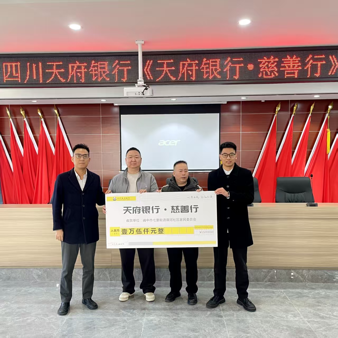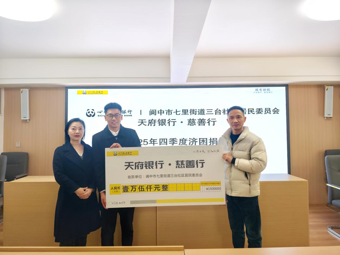 寒风渐起,暖意先行。为深入践行金融机构社会责任,传递金融温度,四川天府银行阆中支行于2025年11月启动“天府银行·慈善行”捐赠系列活动,分别于11月18日、21日走进阆中市七里街道御河社区、三台社区,为60名困难居民捐赠合计30000元爱心善款,以实际行动奏响冬日暖心曲。