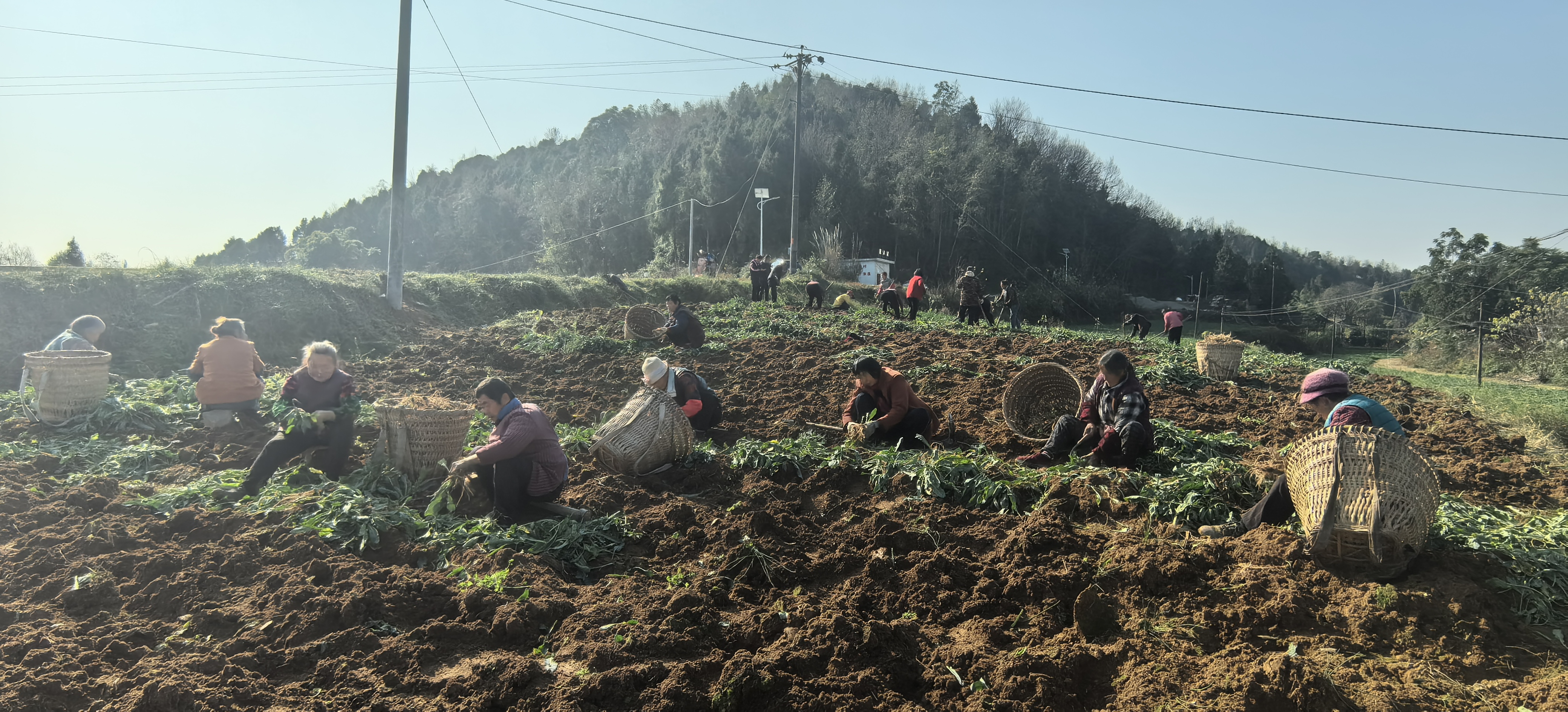 “寒枝裹素,暖阳微醺”阆中市玉台镇万家桥村,田间地头一派繁忙景象。连片的板蓝根地里,村民们手持工具,弯腰采收、分拣装篮,动作娴熟有序,丰收的喜悦洋溢在每个人脸上。