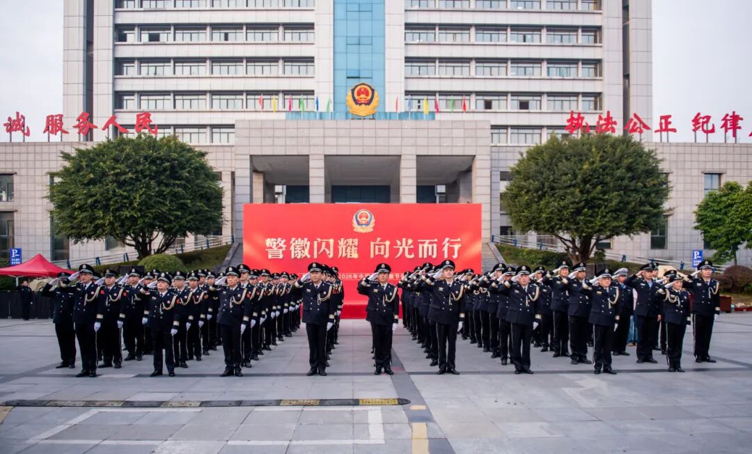 在第六个中国人民警察节来临之际,1月10日,市公安局以“警徽闪耀 向阳而行”为主题举办荣誉仪式,民辅警代表、荣休民警、新警及警属代表齐聚一堂,以升警旗、温誓词、颁荣誉、传薪火的庄重仪式,致敬藏蓝坚守,凝聚奋进力量。副市长、市公安局局长杜小兵参加仪式。