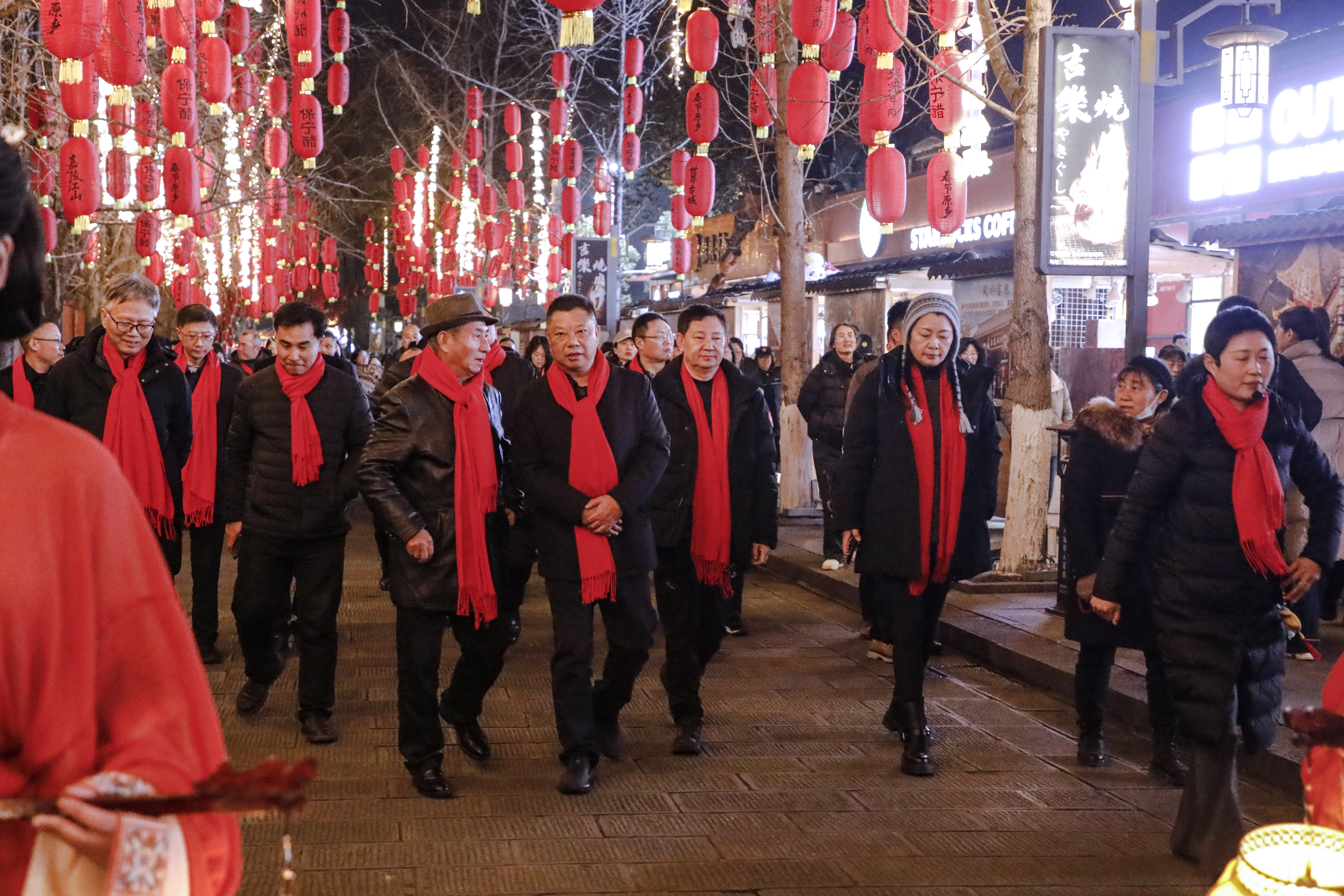 1月25日晚,2026阆中古城过大年春节系列活动正式启动。中国文物学会专家委员会委员、研究员丹青,市委书记杨德宇,市委副书记、市长唐硕,市人大常委会主任刘祎,市政协主席张晓波,市委副书记王宗坤等市委、市人大常委会、市政府、市政协全体在家领导观摩体验了阆中的春节民俗文化活动。