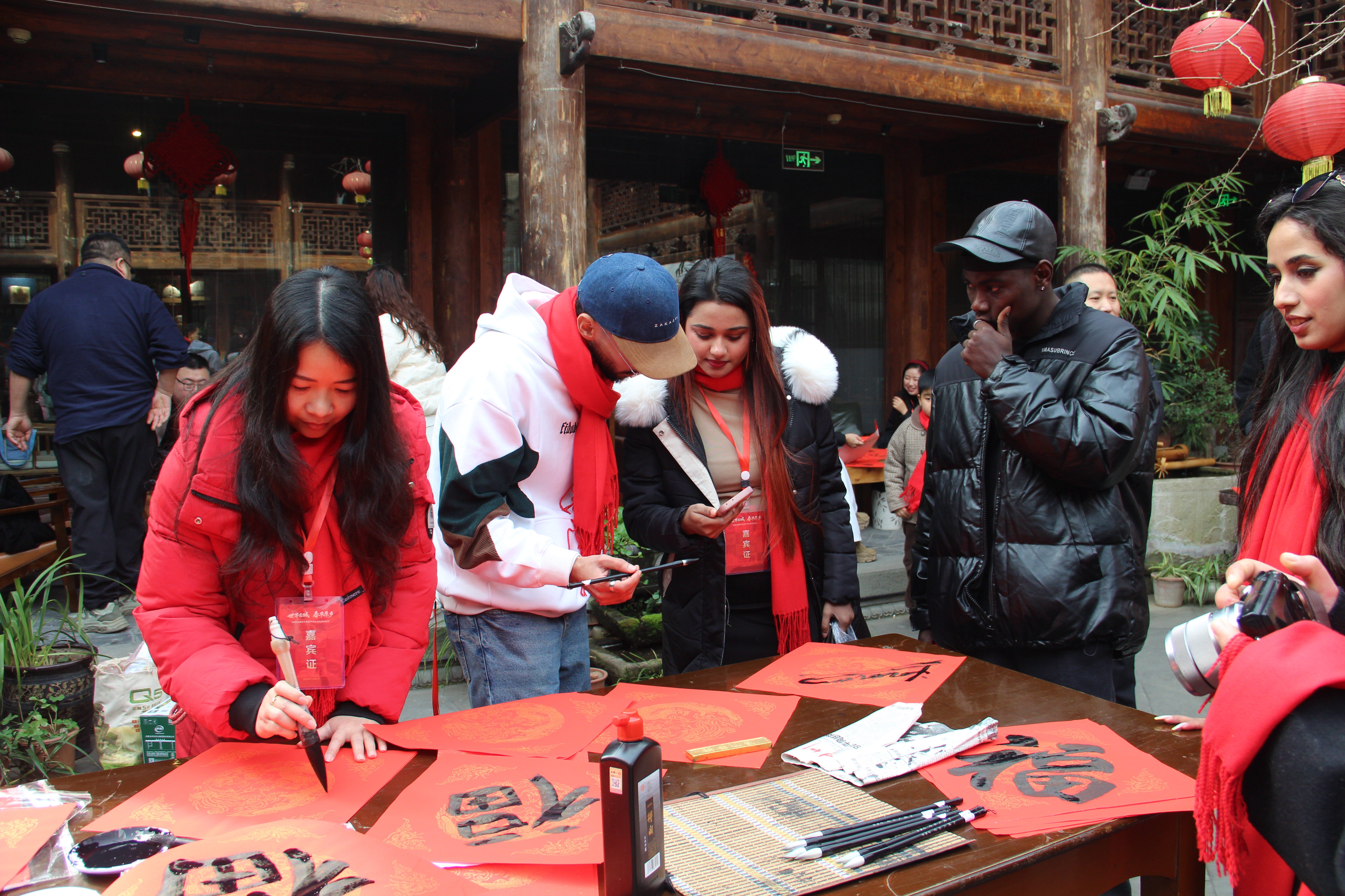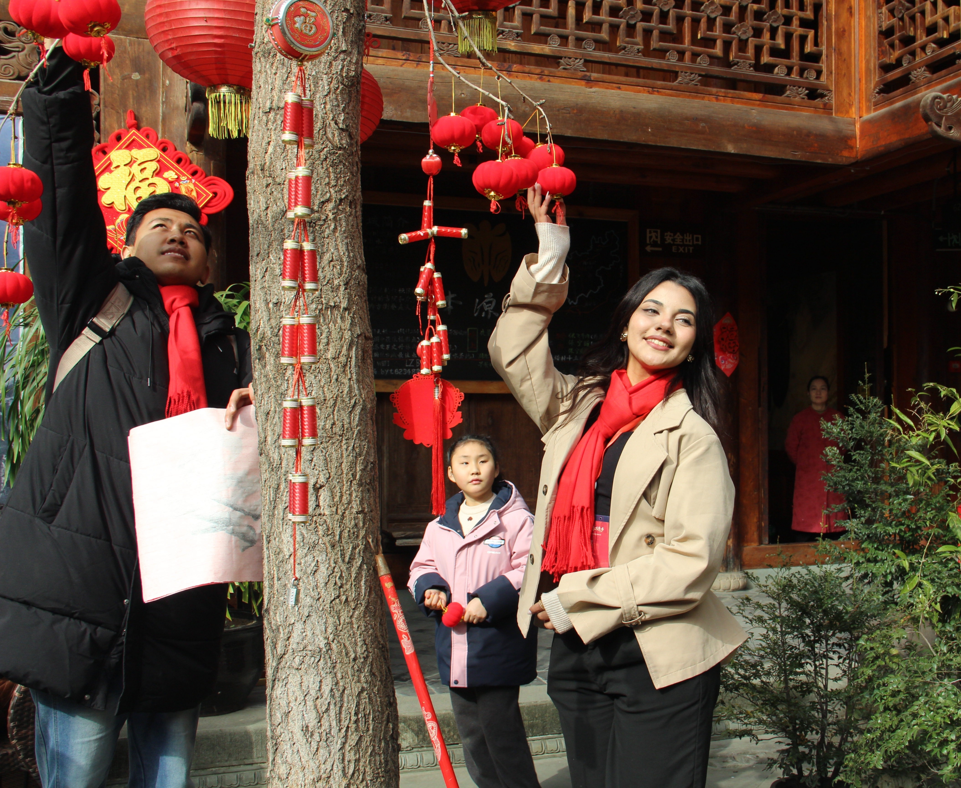 1月25-26日,“2026阆中古城过大年春节系列活动”之“五湖四海阆苑过大年”活动在古城热闹举行。来自西华师范大学、川北医学院、南充职业技术学院的30余名外籍师生,沉浸式体验了中国传统新春习俗。