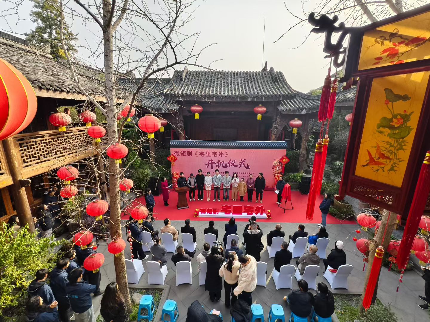 1月27日,由南充市融媒体中心、南充市传媒集团有限公司联合出品的微短剧《宅里宅外》在阆中古城本源堂开机拍摄。