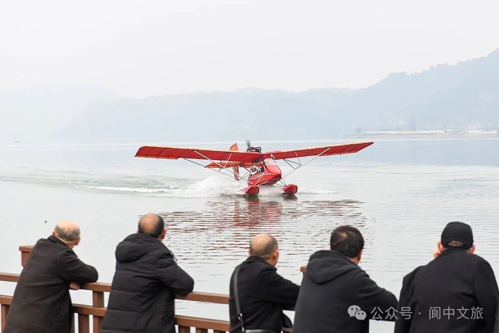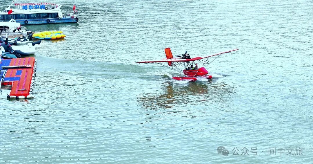 作为阆中“水陆空”立体文旅布局的重要组成部分,2024年11月,阆中水城率先引进水上飞机并投入运营。其独特的空中观光视角广受游客青睐,节假日期间日均起降超50架次,曾获央视等主流媒体报道。