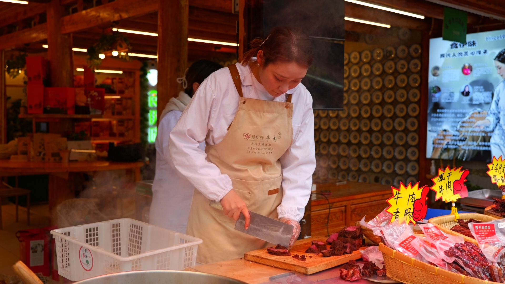 一方水土养一方人,一座古城育一方业。马洋的创业路越走越宽,背后是阆中古城五年间的迭代升级与蝶变发展。这五年,阆中古城坚持“修旧如旧”,让千年文脉焕发新生,保护范围从1.78平方公里拓展至23.17平方公里,多处古建完成修缮;非遗体验、实景演艺常态化开展,吸引着越来越多的游客前来,古城文旅发展迎来全新机遇。马洋敏锐抓住这一风口,在古城大东街开出“前店后厨”的特色牛肉店,主打牛肉制作透明化,还研发出十多种特色口感的牛肉产品,让阆中手工牛肉从古城的巷陌走向了更广阔的视野。在马洋看来,店里的客人越来越多,既有古城熟客,还有慕名而来的外地旅游团,这一切都是古城蝶变带来的发展机遇。