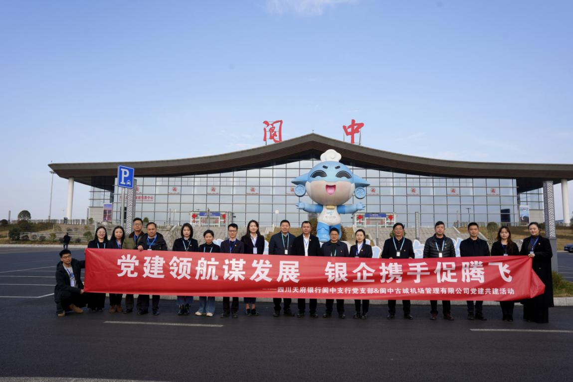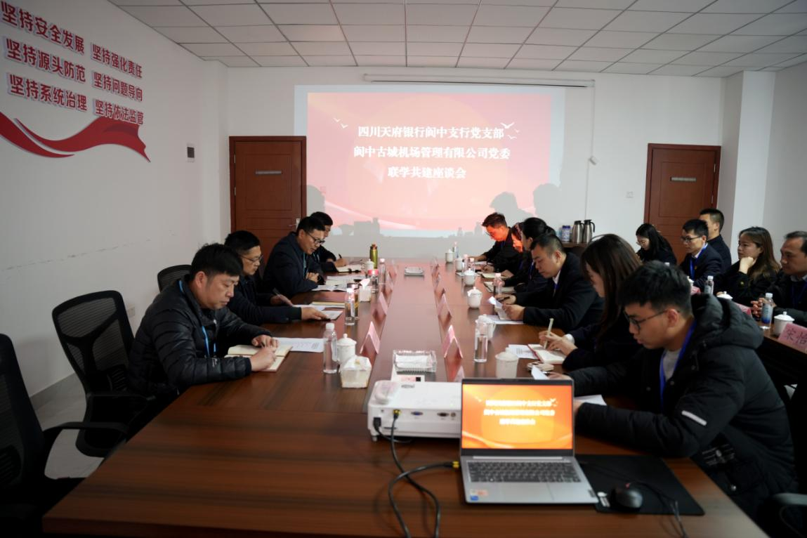 为深入学习贯彻党的二十大精神,全面落实新时代党的建设总要求,推动党建工作与业务发展深度融合,2月26日,四川天府银行阆中支行党支部与阆中古城机场管理有限公司党委联合开展以“党建领航谋发展银企携手促腾飞”主题的党建共建活动。双方党员代表共20余人参加活动,通过实地观摩、座谈交流等形式,凝聚银企合作共识,为地方经济高质量发展注入红色动能。