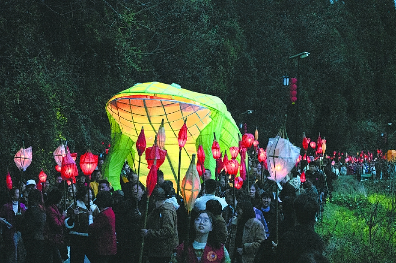 3月2日(农历正月十四),夜幕刚刚降临,南充市顺庆区、嘉陵区、西充县不约而同地“亮”了起来。家家户户扎制蛴蟆灯,人们举灯巡游以灯祈福、以节传情把平安健康的心愿融进灯火里,让这场绵延300余年的民俗盛会蛴蟆节,再次形成了地上银河的奇幻盛景。