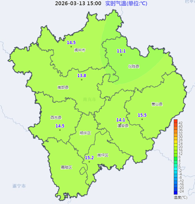 (图为南充市国家级气象站实时气温)