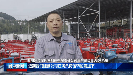 四川建雅摩托车制造有限责任公司生产线负责人冯晓东:“近期,我们建雅公司在满负荷运转的前提下,油三轮和电三轮每一天的产能大概在 200 台左右。在传动系统或者坐垫这块,基本上在阆中本土都有配套的企业,对我们公司物资的供应是相当地充足。我们主要是以国内为主,出口的订单也很饱和。”