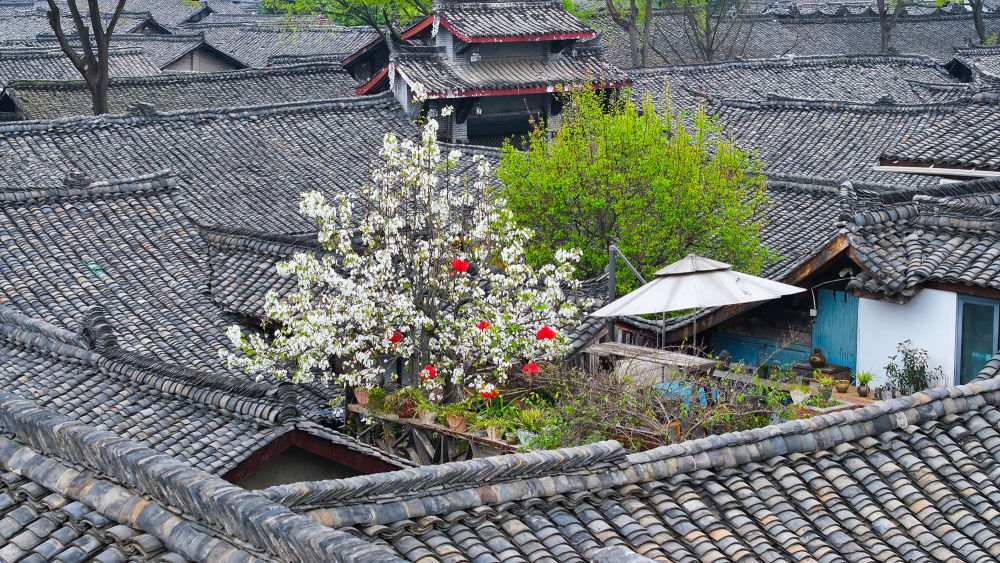 近日,四川省阆中古城一些古院落的梨花陆续绽放,洁白的花朵、冒出嫩芽的绿树与古朴的灰瓦相映成趣,构成一幅独特的古建写意画卷。