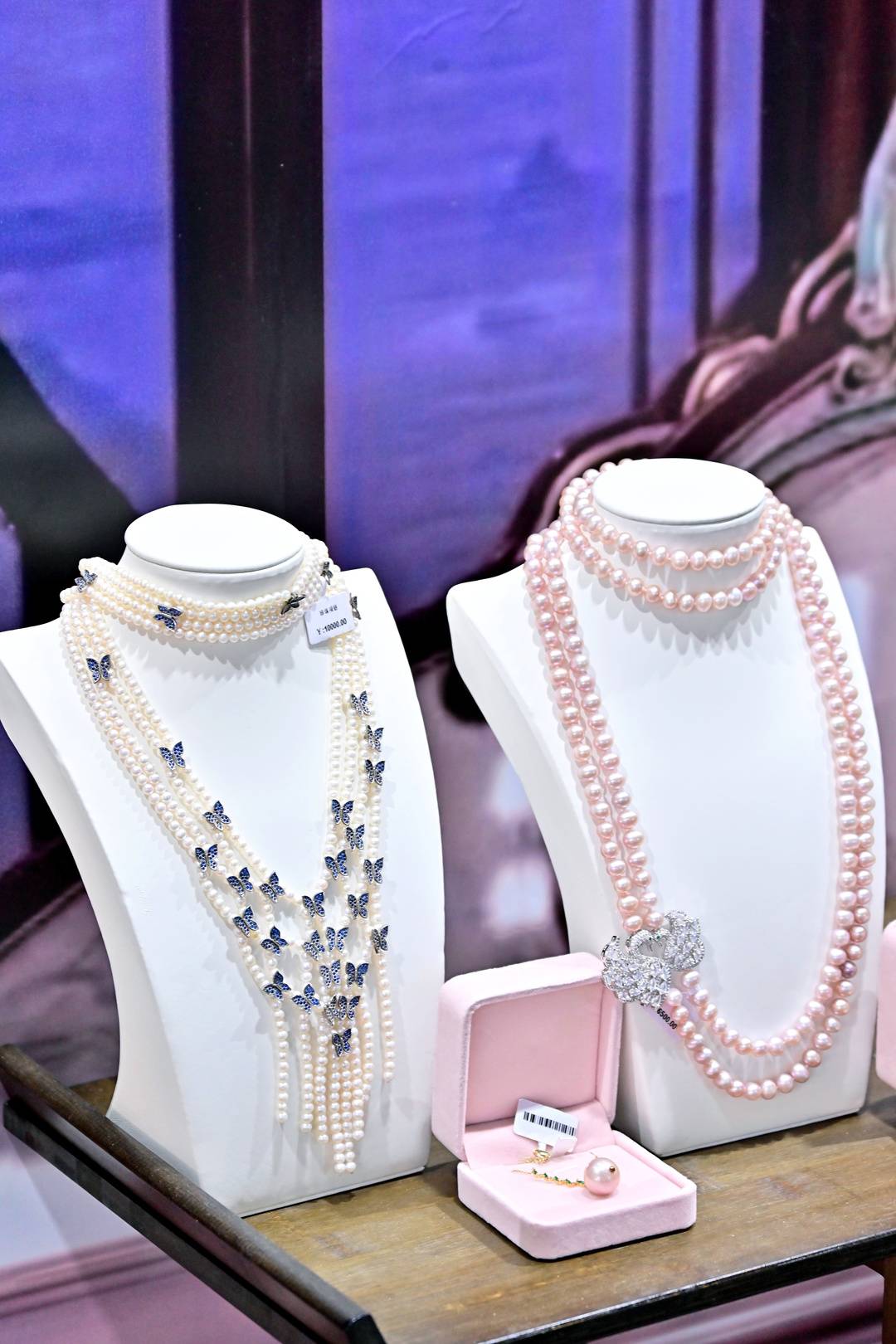 中国西部珍珠产业园内展示的珍珠项链