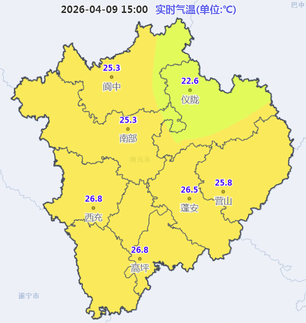 (图为南充市国家级气象站实时气温)