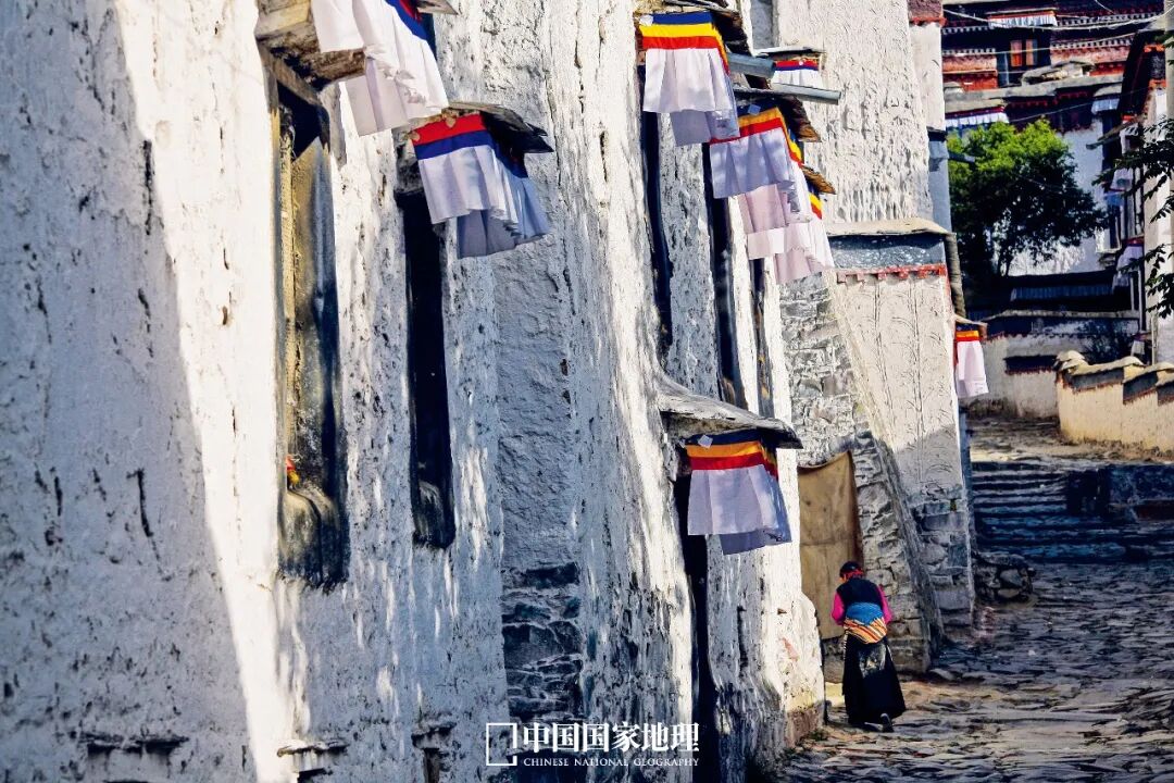 藏式建筑极具民族特色,白墙整洁醒目