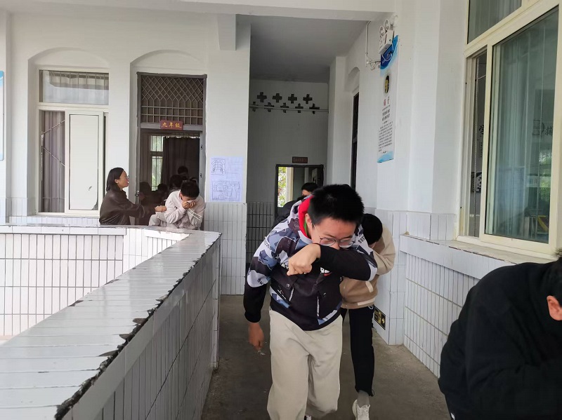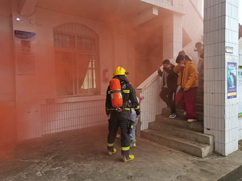 随着警报声响起,演练正式开始。各班师生迅速响应,在教师引导下,学生们用湿毛巾捂住口鼻、弯腰低姿,沿预定路线快速有序撤离至操场安全区域。整个过程紧张规范,无拥挤、无慌乱,各岗位人员全程值守,保障疏散安全。