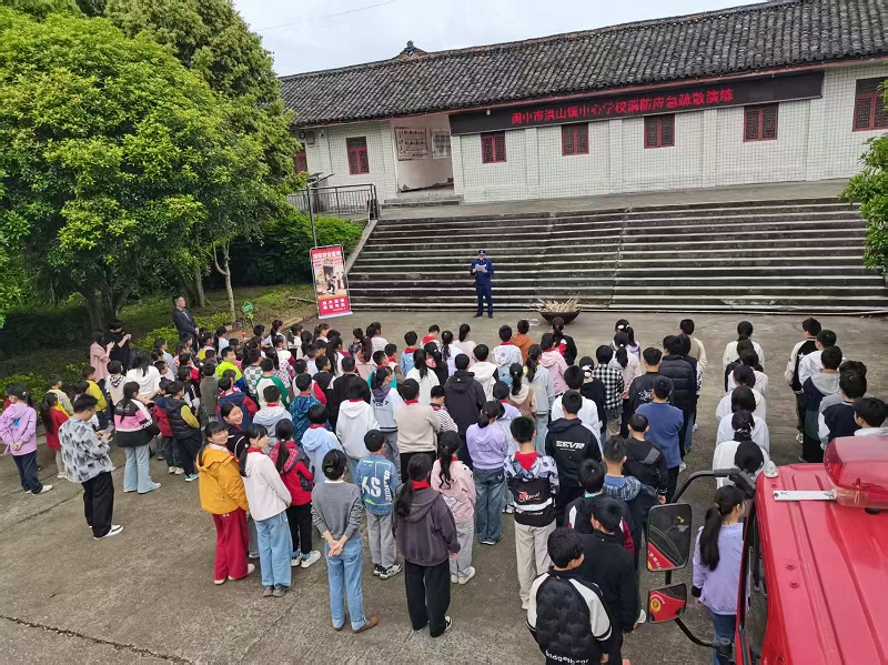 ——洪山镇中心学校开展多部门联合消防应急疏散演练