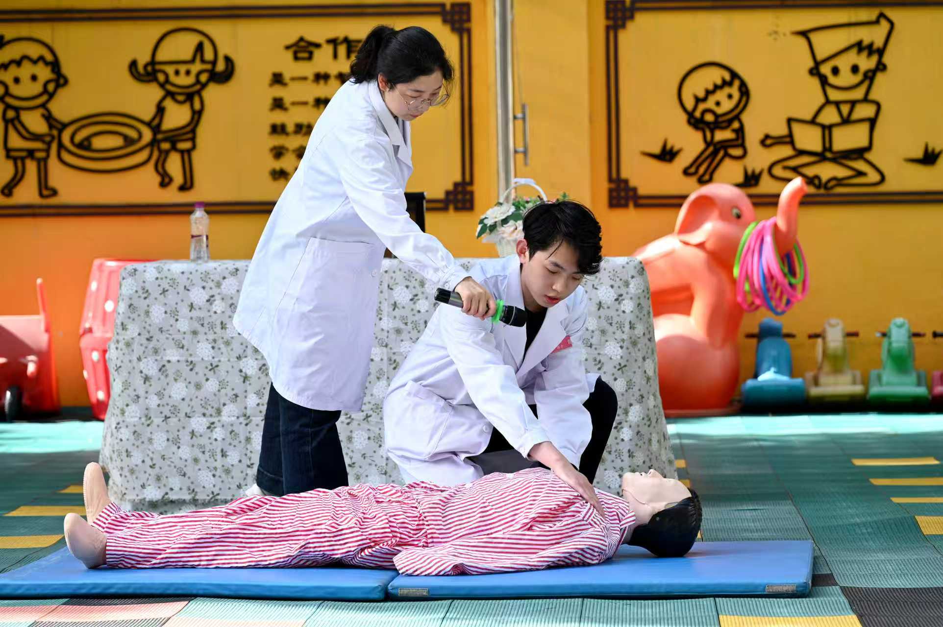 在互动环节,医务人员现场演示了标准的心肺复苏操作流程,详细讲解按压位置、按压深度等注意事项,家长们热情高涨,主动上前进行实操体验。医务人员在一旁耐心指导,及时纠正不规范动作。这场互动让家长们切实掌握了急救技能,为应对突发状况增添了一份保障。