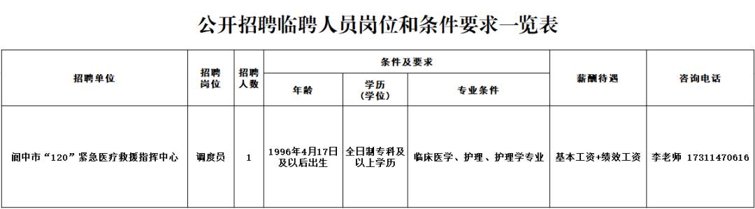 根据《阆中市紧密型县域医共体实施方案》和卫健系统临聘人员管理规定,结合相关单位用人需求,按照“公开、平等、竞争、择优”的原则,拟面向社会公开招聘临聘人员1名,现将相关事项公告如下。